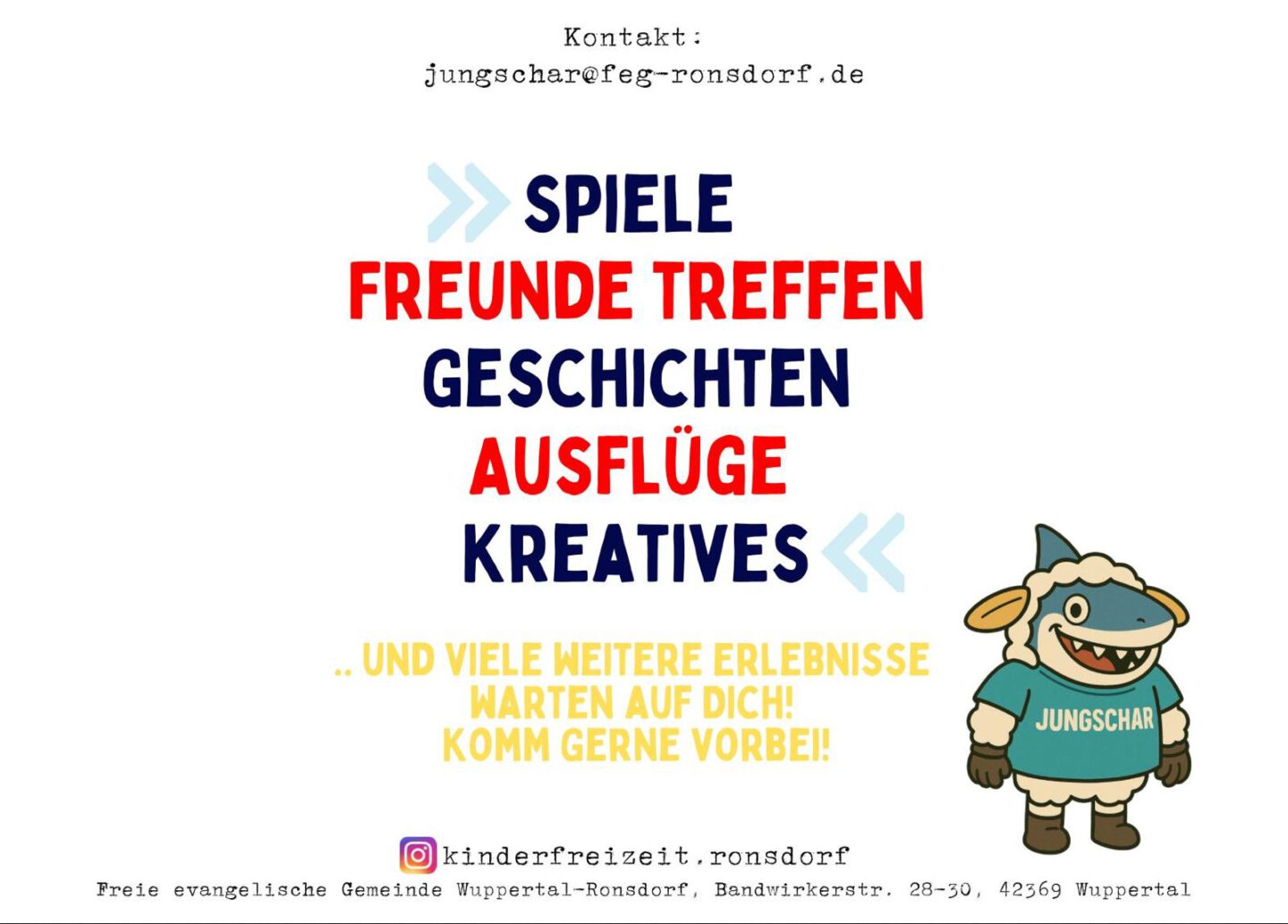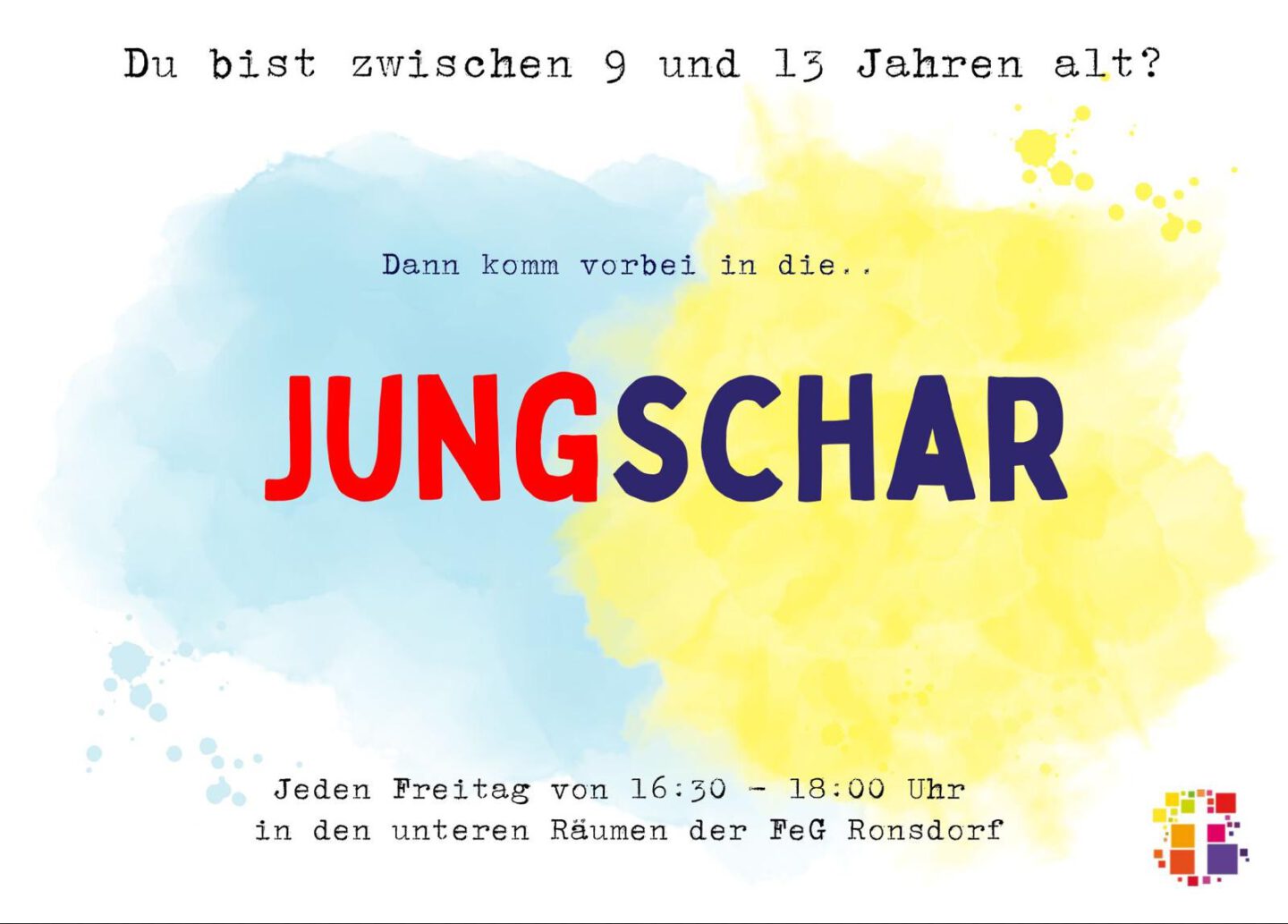 wir laden euch herzlich zu unserer Jungschar ein! Treffpunkt ist jeden Freitag um 16:30 Uhr. Freut euch auf spannende Spiele, kreative Bastelaktionen und tolle Gemeinschaft. Kommt vorbei und verbringt schöne Stunden mit uns!